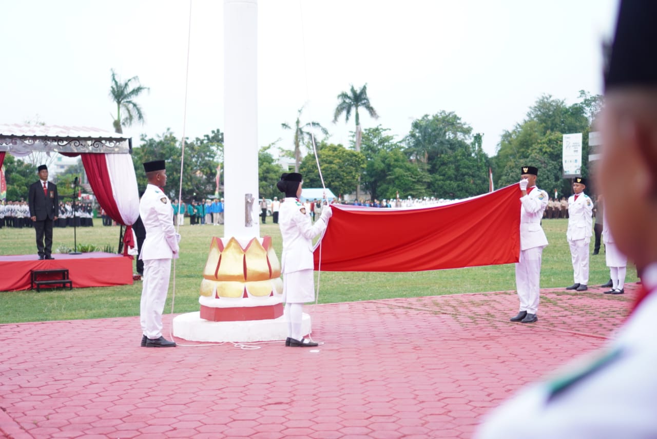Prosesi penurunan bendera berjalan tertib dan lancar. Pasukan pengibar bendera dengan penuh hormat menurunkan Sang Saka Merah Putih, disaksikan oleh jajaran Forkopimda, aparatur sipil negara, pelajar, serta masyarakat yang hadir dengan penuh antusiasme.
