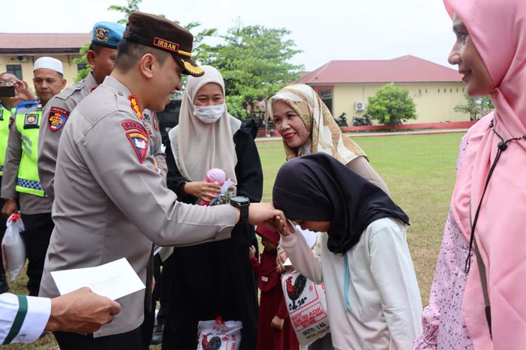 BeritaNasional.ID, Deli Serdang – Kapolresta Deli Serdang Kombes Pol Irsan Sinuhaji, SIK, MH bersama Unit Pengumpul Zakat Profesi Polri Polresta Deli Serdang yang diketuai oleh Aiptu H.Syahruddin Lubis, SH beserta Baznas Kabupaten Deli Serdang membagikan zakat dan beras kepada kaum dhuafa, Janda dan Anak yatim dalam rangka menyambut Hari Raya Idul Fitri 1444 H Tahun 2023 di Lapangan Apel Mapolresta Deli Serdang, Senin (17/4/2023).