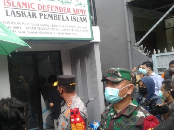 Kedatangan mereka untuk mencabut sejumlah atribut FPI. Mereka tiba di markas FPI sekitar pukul 16:10 WIB, dipimpin oleh Kapolres Jakarta Pusat Kombes Heru Novianto dan Dandim Jakarta Pusat Kol Inf Luqman Arief.