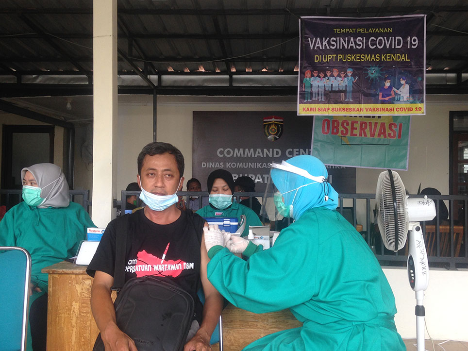 BeritaNasional.ID, Ngawi – Setelah menjalani program vaksinasi tahap 1 sekitar 2 (dua) minggu yang lalu, para pelayan publik khususnya wartawan kembali menjalani vaksinasi dosis kedua pada hari Selasa, 23 Maret 2021 bertempat di gedung Kominfo Ngawi. Vaksinasi kali ini kembali digelar dengan penylenggara yaitu Dinas Kesehatan Kabupaten Ngawi dan pelaksana adalah UPT Puskesmas Kendal.