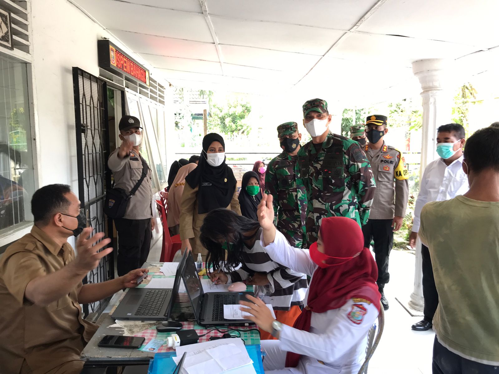 BeritaNasional.ID-TANJUNGBALAI Kapolres Tanjungbalai AKBP Triyadi SH, S.I.K bersama dengan Forum Komunikasi Pimpinan Daerah (Forkopimda) Kota Tanjungbalai meninjau pelaksanaan vaksinasi massal yang dilaksanakan pada