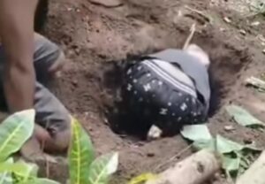 Scrensot dalam video viral salah satu warga saat membongkar makam