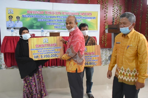 Di akhir pembukaan bimtekw, Wakil Bupati Insyafuddin, ST didampingi Kepala Dinas Sosial, Zulfiqar menyerahkan bantuan secara simbolis kepada perwakilan masing-masing penerima jenis bantuan usaha.[]