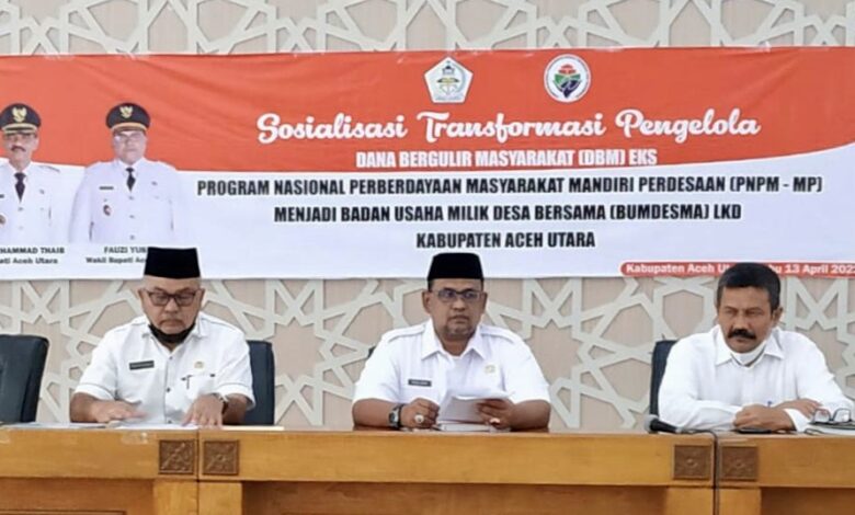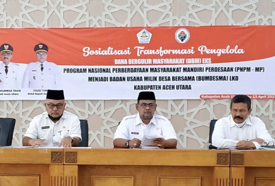 Penegasan itu disampaikan Wabup Fauzi Yusuf saat membuka acara Sosialisasi Transformasi Pembentukan Pengelola Dana Bergulir Masyarakat Eks PNPM Menjadi BUMDes-Ma, yang berlangsung di Aula Kantor Bupati Aceh Utara dan dihadiri oleh Para Camat, Korcam Pendamping Desa, Pengurus UPK dan Pengurus BKAD Eks PNPM lainnya, Rabu (13/4/2022).