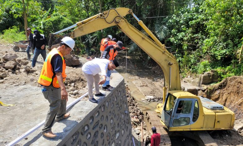Pantauan media, belasan pekerja dan beberapa alat berat nampak sibuk di lokasi ini. “Saya mengunjungi dan mengontrol pengerjaannya. Yang dibangun saat ini masih bersifat sementara, agar secepatnya bisa dilalui dengan aman,” kata Asman.