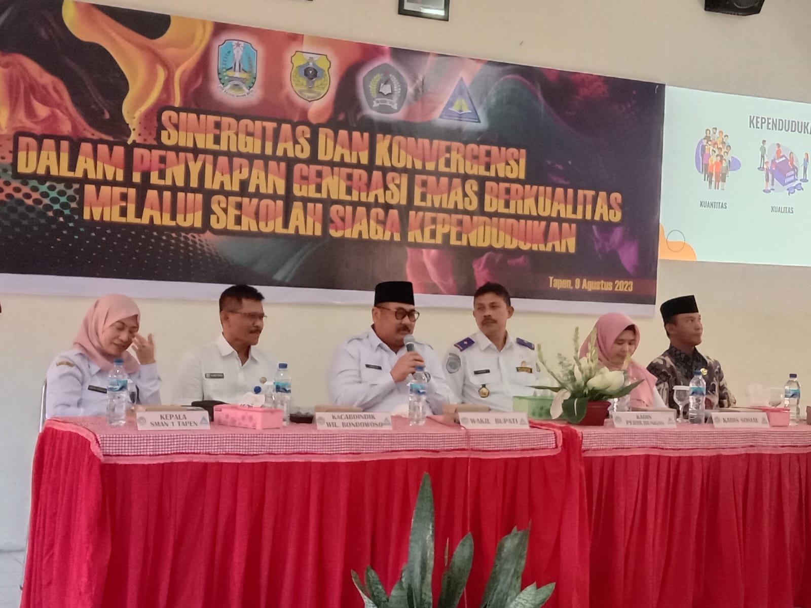 Pihaknya mendukung inovasi Sekolah Siaga Kependudukan (SKK) yang sudah dilaksanakan tahun 2023 ini di SMAN 1 Tapen. “Ini merupakan program yang bagus dan saya sangat mendukung. Saya juga berharap SMAN 1 Tapen bisa mendapatkan dukungan dari semua stakeholder. Salah satunya dari Dinas Perhubungan, supaya bisa di fasilitasi dengan membuat zebra cross agar anak-anak selamat,” pesannya.