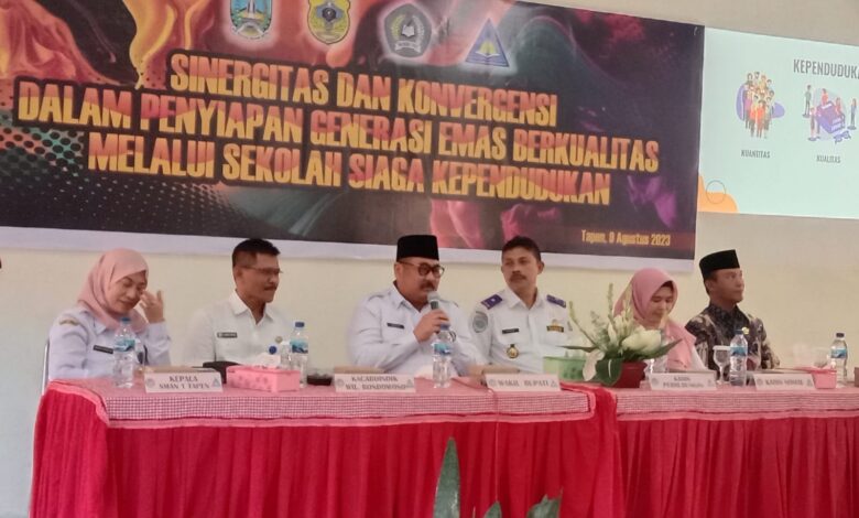 Pihaknya mendukung inovasi Sekolah Siaga Kependudukan (SKK) yang sudah dilaksanakan tahun 2023 ini di SMAN 1 Tapen. “Ini merupakan program yang bagus dan saya sangat mendukung. Saya juga berharap SMAN 1 Tapen bisa mendapatkan dukungan dari semua stakeholder. Salah satunya dari Dinas Perhubungan, supaya bisa di fasilitasi dengan membuat zebra cross agar anak-anak selamat,” pesannya.
