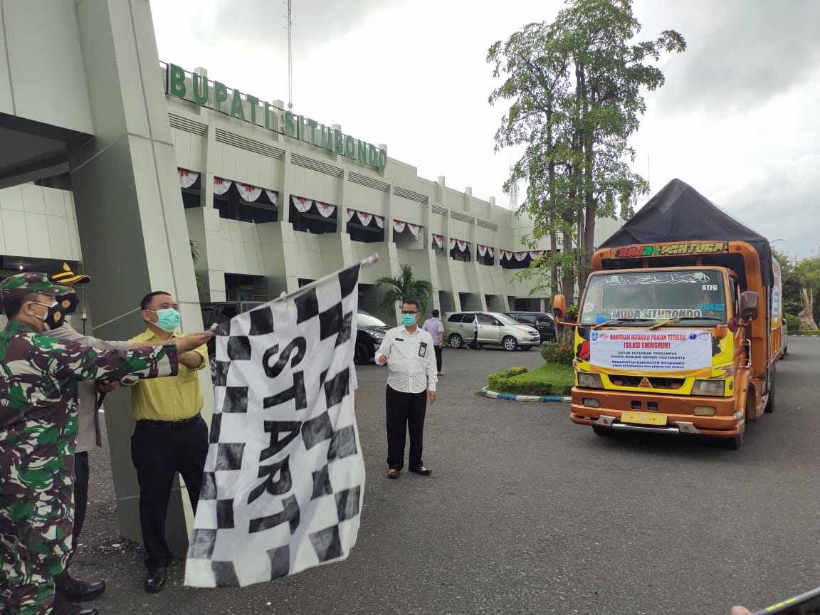 BeritaNasional.ID – SITUBONDO – Wakil Bupati Situbondo Ir. H. Yoyok Mulyadi M.Si, berasama Dandim 0823 Situbondo Letkol Inf Neggy Kuntagina S.I.P, Kapolres Situbondo AKBP. Ach. Imam Rifai, SH, S.I.K melepas truk bermuatan bantuan sosial pakan ternak silase batang sorghum untuk peternak di Kabupaten Klaten, Jawa Tengah yang terdampak erupsi Gunung Merapi, Rabu (10/2/2021).