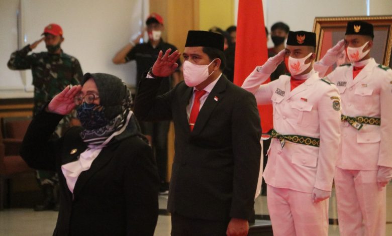 Sulbar –Wakil Gubernur Sulbar Enny Anggraeny Anwar, didampingi Asisten Bidang Pemerintahan, M. Natsir dan Kepala Dinas Kepemudaan dan Olahraga Sulbar, Muhammad Hamzih, mengikuti upacara pengukuhan delapan anggota Pasukan Pengibar Bendera Pusaka (Paskibraka) tingkat nasional secara virtual, di ruang Auditorium Lantai 4 Kantor Gubernur Sulbar, Kamis 13 Agustus 2020.