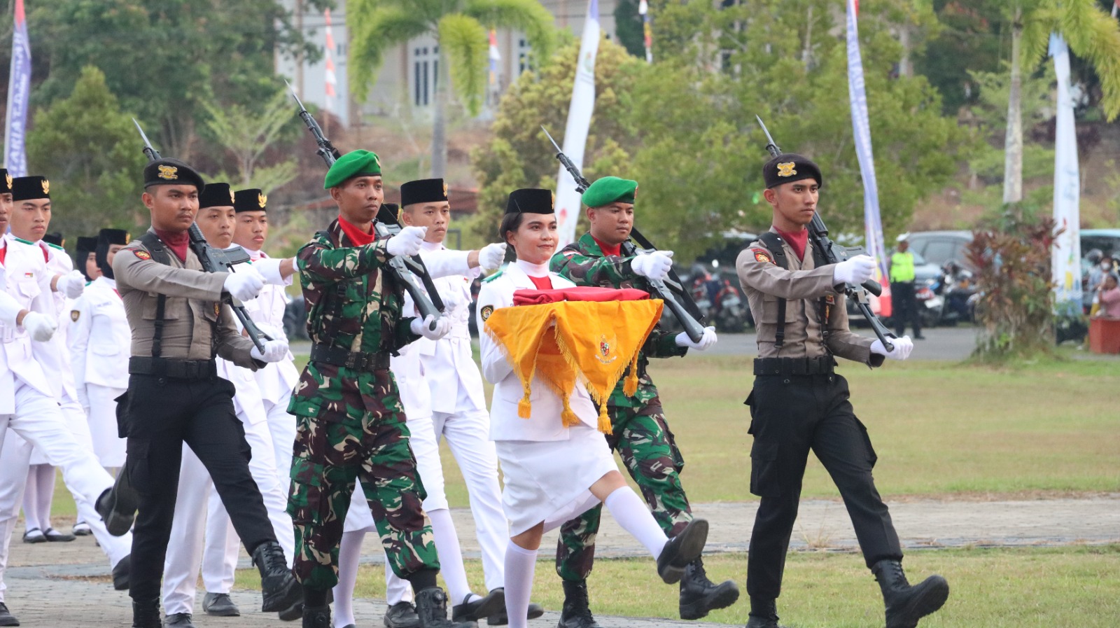 Peserta upacara terdiri dari TNI, Polri, Satpol PP, Dishub, ASN dan pelajar di kabupaten Sekadau.