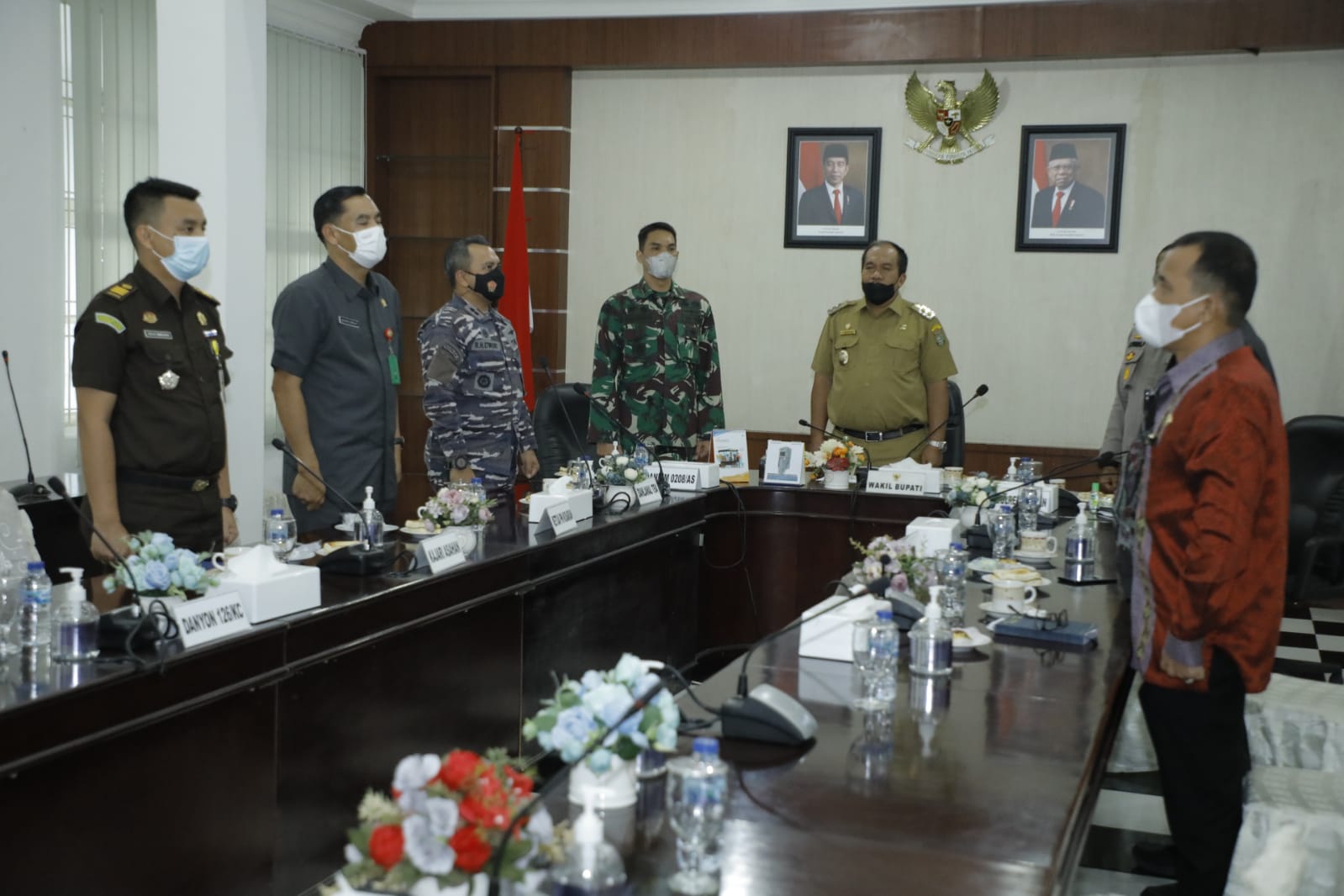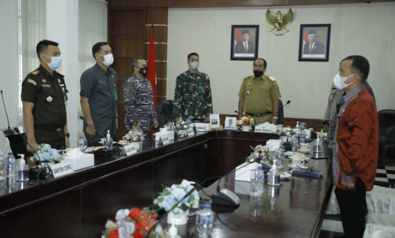 Wakil Bupati Asahan bersama unsur Forkopimda diantaranya Dandim 0208/As Letkol Inf. Sri Marantika Beruh S.Sos, Danlanal TBA Letkol Laut (P) Robinson Etwiory SE, Kapolres Asahan AKBP Putu Yudha Prawira SIK, Ketua PN Kisaran, dan perwakilan Kajari Asahan itu mengikuti arahan Presiden RI secara virtual dari aula Mawar kantor Bupati setempat, Kamis (16/09/2021) pagi.