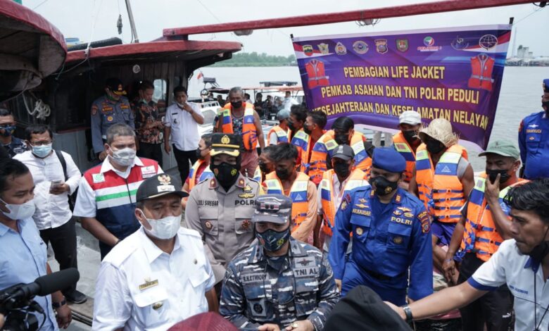 Kemudian untuk memberikan keamanan bagi nelayan saat melaut di tengah kondisi cuaca yang tidak menentu, Wakil Bupati dan rombongan membagikan Life Jacket sebanyak 100 pcs kepada nelayan di perairan Bagan Asahan.(krm)