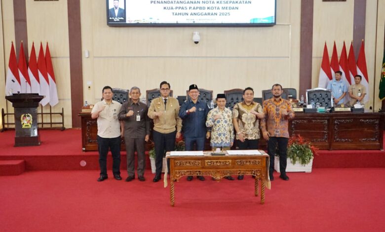 Penandatanganan nota kesepakatan KUA dan PPAS Rancangan P.APBD TA 2025 dilakukan Rico Waas bersama dengan pimpinan DPRD Kota Medan melalui rapat paripurna DPRD Kota Medan yang berlangsung di Gedung DPRD Kota Medan, Selasa (12/8/2025).