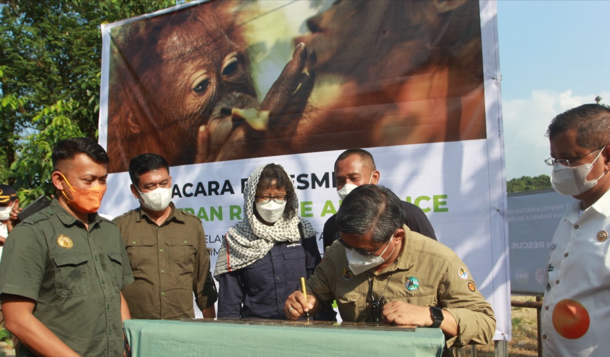 BeritaNasional.ID, Langkat – Wakil Menteri Lingkungan Hidup dan Kehutanan (Wamen LHK) Republik Indonesia, Alue Dohong, Phd, meresmikan lokasi Pusat Penyelamatan Orangutan, Beruang, dan Primata dilindungi lainnya, di Dusun Pante Buaya, Desa Bukit Mas, Kecamatan Besitang, Kabupaten Langkat, Sumatera Utara, Rabu (12/1/2022). Peresmian ini dilakukan pada kunjungan kerjanya, selama dua hari di Sumatera Utara, terhitung Rabu dan Kamis (12-13 Januari 2022).