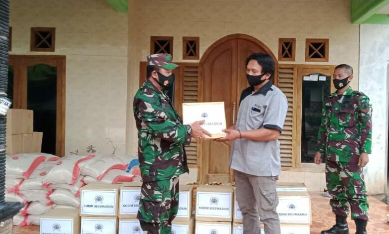 BeritaNasional.ID, Madiun — Koramil 0803/05 Wungu bersama Polsek Wungu dan perangkat desa menyerahkan bantuan sembako untuk warga yang menjalani isolasi mandiri setelah terkonfirmasi Covid-19 di Dusun Bulurejo, Desa Bantengan, Kecamatan Wungu, Kabupaten Madiun, Senin (14/6/2021).