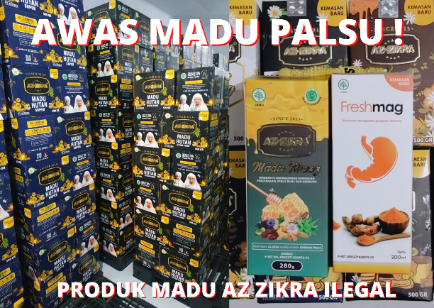 Diperoleh informasi, jika semua produk merek Az-Zikra yang terdaftar di HAKI bernomor IDM000579654 milik Muhammad Jafar Audah diduga menggunakan ijin edar palsu dan semua produk madu ilegal, serta mengandung bahan yang dilarang Badan POM RI untuk PIRT.
