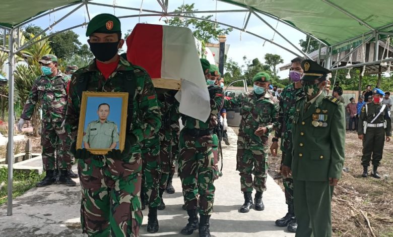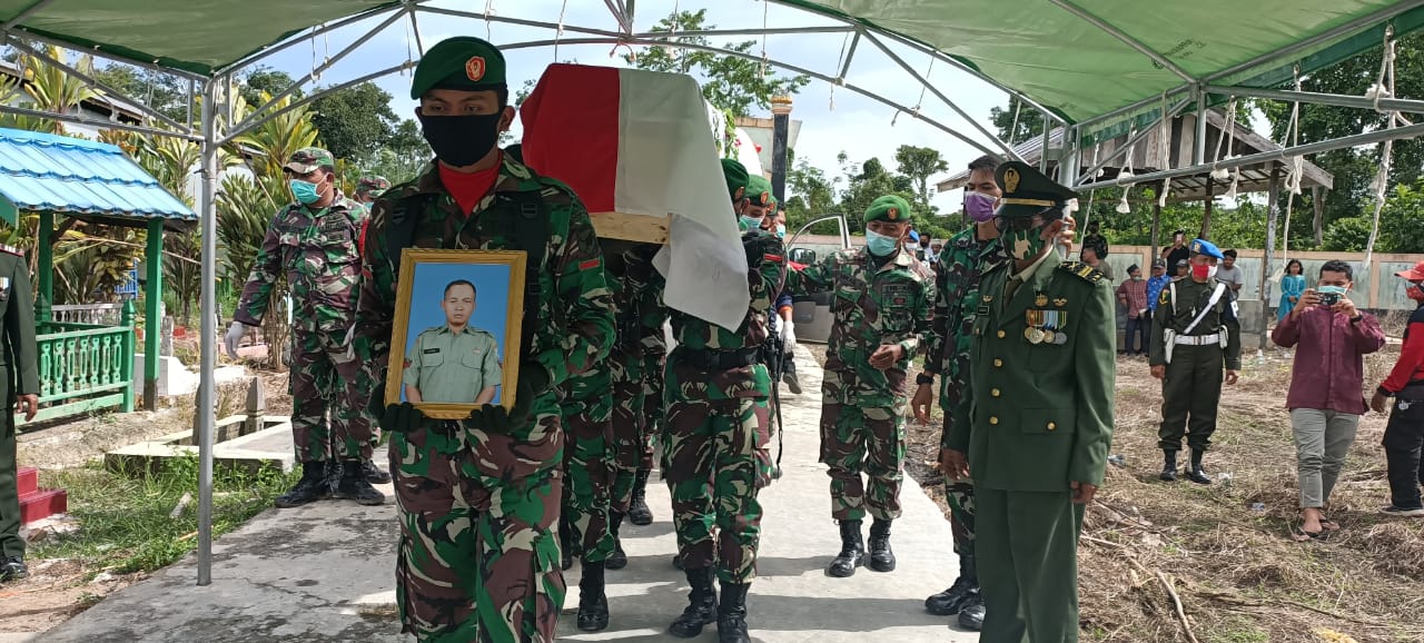 Upacara pemakaman secara militer dilakukan sebagai penghormatan terakhir terhadap anggota Babinsa Koramil 1015-09/Baamang Koptu Alfiani yang meninggal dunia
