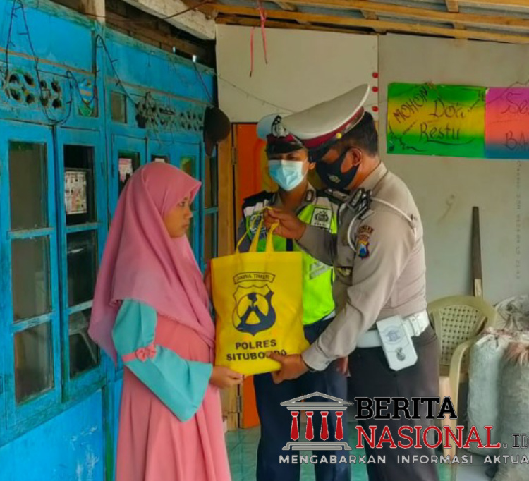 BeritaNasional.ID, SITUBONDO, JAWA TIMUR – Anak yatim piatu yang orang tuanya meninggal dunia karena Covid- 19 di Kecamatan Banyuglugur, Kabupaten Situbondo mendapat bantuan sembako dari Satlantas Polres Situbondo, Sabtu (30/10/2021).